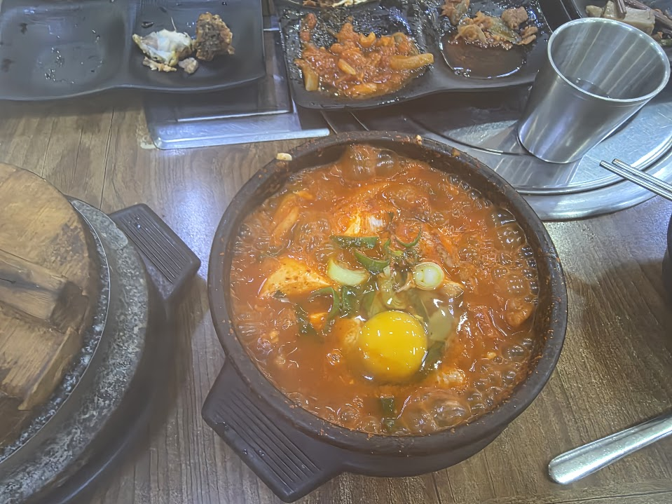 저는 돼지김치순두부를 시켜먹었는데 한식뷔페가 기대를 너무 올려놔서 그런지 순두부찌개의 맛은 원래 먹던 그 맛이라고 생각됐어요. 대신 밥이 정말 맛있어서 뷔페를 더 맛있게 즐길 수 있었습니다.